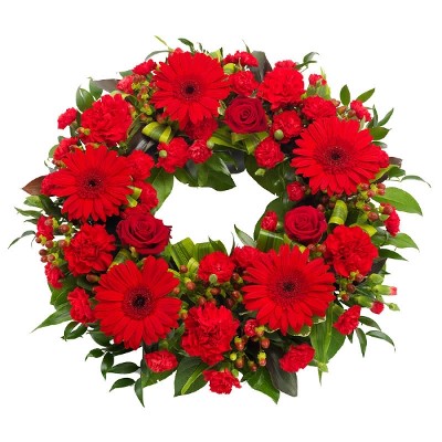 Toon uw liefde en medeleven met deze mooie rouwkrans. Deze bevat doorgaans bloemen zoals rozen, gerbera’s, anjers en seizoensbladgroen.