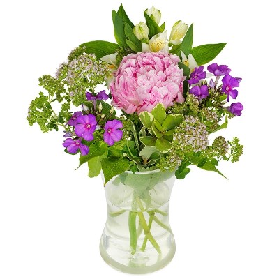 Superromantisch pioenrozenboeket gemaakt metdonker- en lichtroze pioenen. Vaas is niet inbegrepen maar kan wel apart worden besteld.